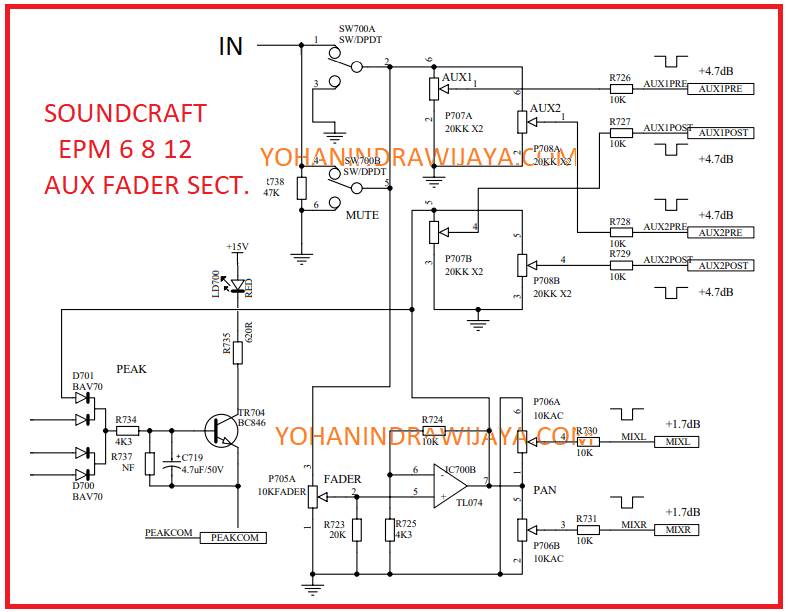 Skema mixer 7 potensio, fungsi mixer 7 potensio, skema penguat mic roland 7.